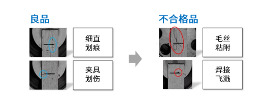 传统的机器视觉算法方案难以应对生产过程中复杂的“灰色地带”。以电极激光焊接为例,良品表面细微的工艺痕迹(如夹具接触留下的正常划痕)与真实的微小缺陷(如纤维异物残留)在图像上仅有极其微小的差异。传统基于规则的视觉算法很难精准区分,容易出现两种问题: